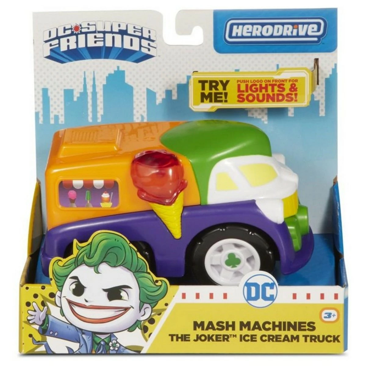 DC Superfriends Mash Machines are cute vehicles inspired by your favourite DC characters. These adorable vehicles are fully-equipped with flashing lights and different sounds based on each character. There are no individual steps needed to start endless hours of fun playtime. Just push the button with the character’s logo at the front of the vehicle. The lights and sounds will then start to play. There are four vehicles to collect. First is the Superman Fire Engine. The truck’s body has the same colour as Superman’s costume: red and blue. Next is the Batman Police Car that resembles the Batmobile. The third vehicle is the Joker Ice Cream Truck which is super cute with all the different colours matching Joker’s clothes and hair. The last vehicle is The Flash Motorcycle complete with The Flash’s logo. DC Superfriends Mash Machines are recommended for DC fans aged 3+. 2 AAA batteries are required to operate each vehicle (already included in the package), and each item is sold separately and subject to availability.