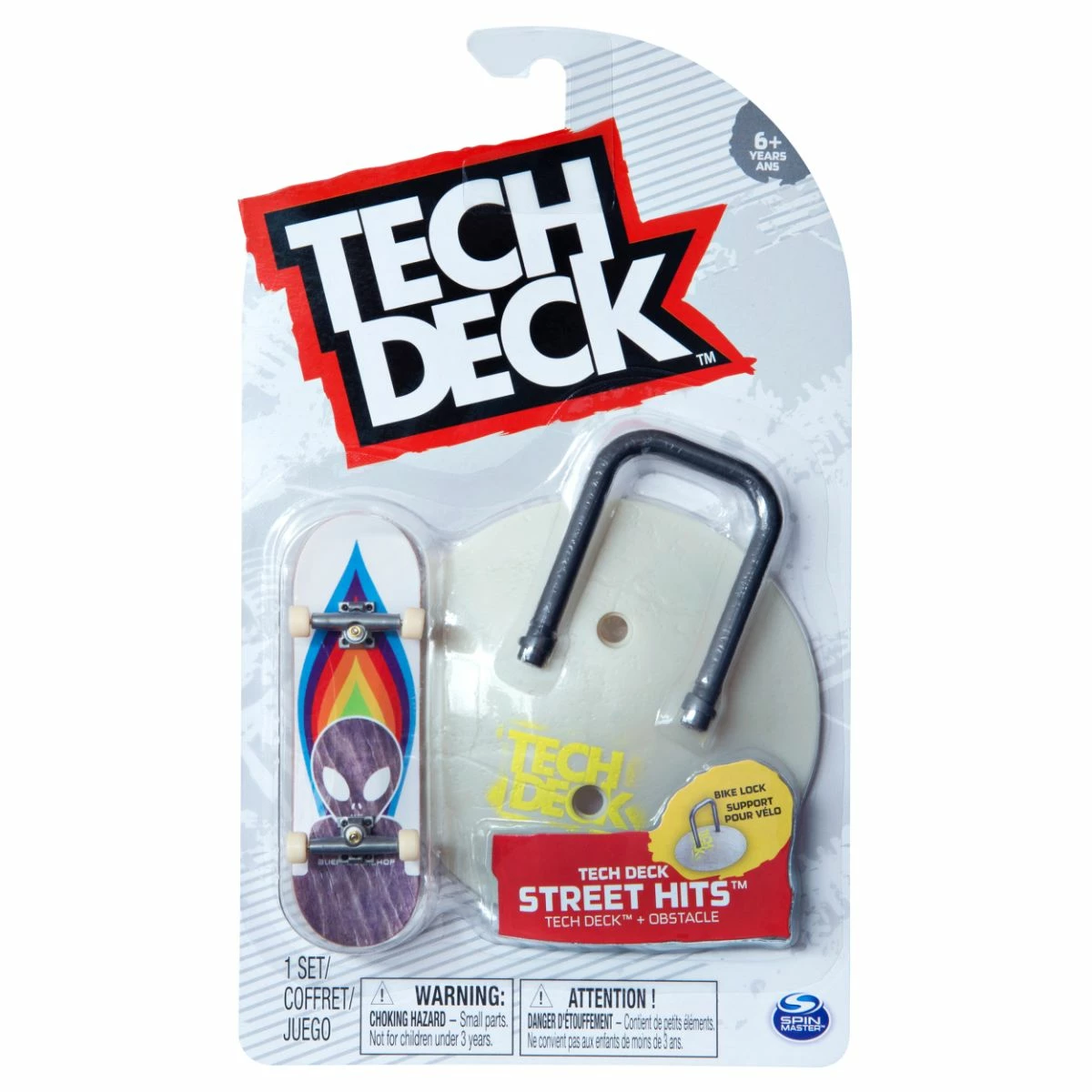 Why need a skatepark when the whole world is your skatepark? With all-new Street Hits from Tech Deck, hit the streets in style now. Inside each Tech Desk street Hits pack is a single, assembled and fully functional fingerboard. It also comes along with a sick street feature that lets you start your freestyle fun right away. Starting with Street Hits, it uses authentic graphics to cruise around on an official board. Later, you can string together multiple pieces and create your very own street lines. These Street Hits packs have everything you need to build a Tech Desk foundation. Collect them all to expand your collection of street obstacles to pop an ollie, ride a rail, pull off a sick flip or stall on edge. This item is part of the Tech Deck Street Hits assorted collection. The recommended age for this product is 6 years and older. Small parts may pose a choking hazard for small children.
